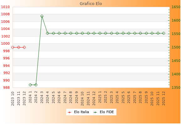 Elo FIDE: 1552    Migliore: 1616  (Marzo 2024)    Peggiore: 1360  (Gennaio 2024)