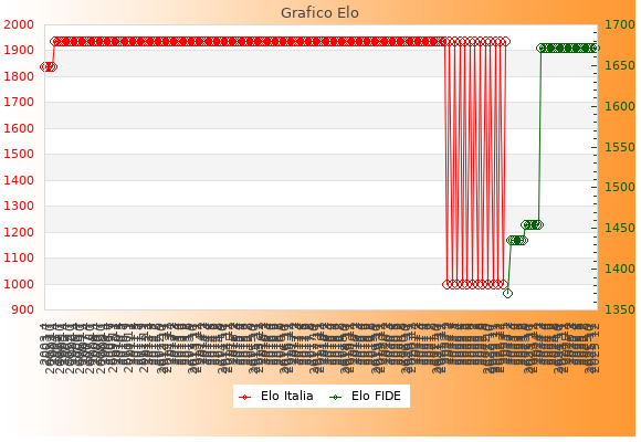Elo FIDE: 1672    Migliore: 1672  (Dicembre 2025)    Peggiore: 1371  (Febbraio 2023)