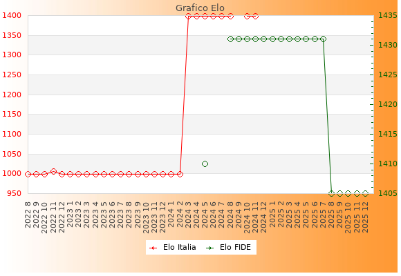 Elo FIDE: 1405    Migliore: 1431  (Luglio 2025)    Peggiore: 1405  (Agosto 2025)