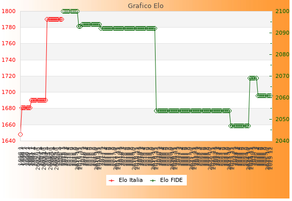 Elo FIDE: 1819    Migliore: 1913  (Gennaio 2019)    Peggiore: 1635  (Febbraio 2024)