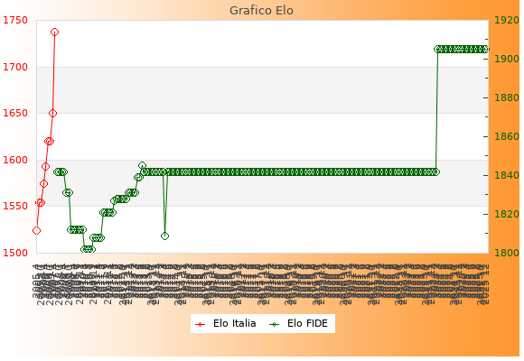 Elo FIDE: 1905    Migliore: 1905  (Dicembre 2025)    Peggiore: 1802  (Marzo 2010)
