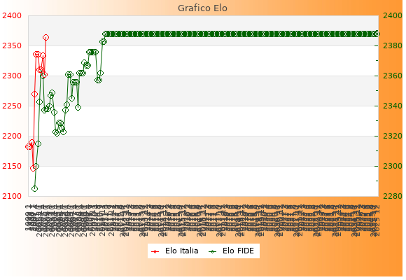 Elo FIDE: 2388    Migliore: 2388  (Dicembre 2025)    Peggiore: 2285  (Gennaio 2001)