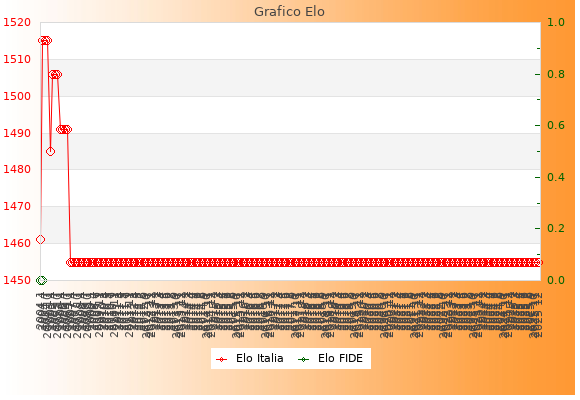 Elo Italia: 1455    Migliore: 1515  (Ottobre 2004)    Peggiore: 1455  (Gennaio 2007)