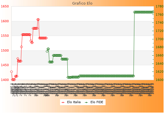 Elo FIDE: 1766    Migliore: 1766  (Marzo 2026)    Peggiore: 1606  (Gennaio 2017)