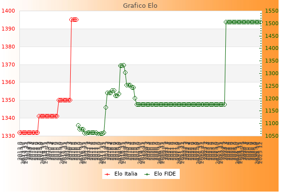 Elo Italia: 1461    Migliore: 1461  (Dicembre 2025)    Peggiore: 1437  (Luglio 2006)