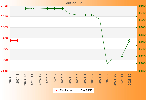 Elo FIDE: 1564    Migliore: 1653  (Dicembre 2024)    Peggiore: 1499  (Settembre 2025)