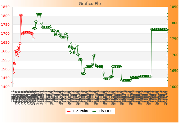 Elo FIDE: 1780    Migliore: 1828  (Luglio 2010)    Peggiore: 1621  (Novembre 2020)