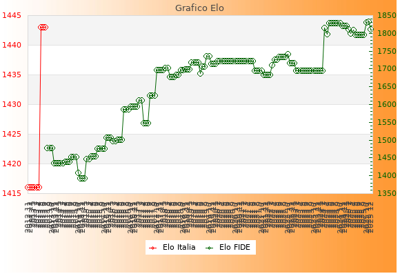 Elo FIDE: 1812    Migliore: 1832  (Novembre 2025)    Peggiore: 1392  (Novembre 2014)