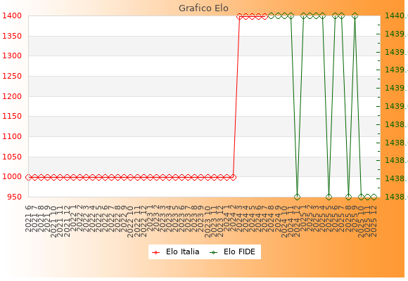 Elo FIDE: 1438    Migliore: 1440  (Settembre 2025)    Peggiore: 1438  (Dicembre 2024)