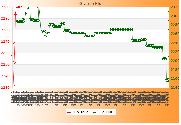 Elo FIDE: 2157    Migliore: 2320  (Ottobre 2008)    Peggiore: 2157  (Ottobre 2025)