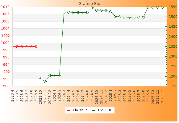 Elo FIDE: 1781    Migliore: 1781  (Dicembre 2025)    Peggiore: 1310  (Febbraio 2017)