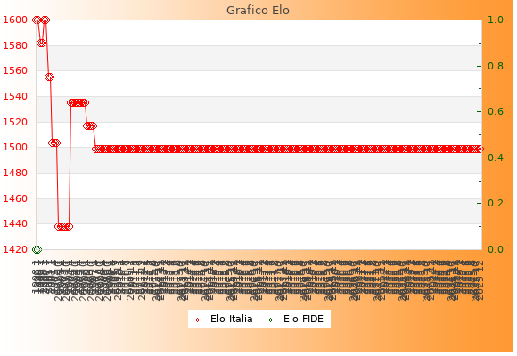 Elo Italia: 1499    Migliore: 1600  (Luglio 2000)    Peggiore: 1438  (Ottobre 2002)
