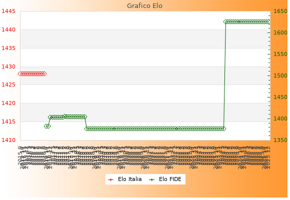 Elo FIDE: 1626    Migliore: 1626  (Dicembre 2025)    Peggiore: 1377  (Giugno 2018)