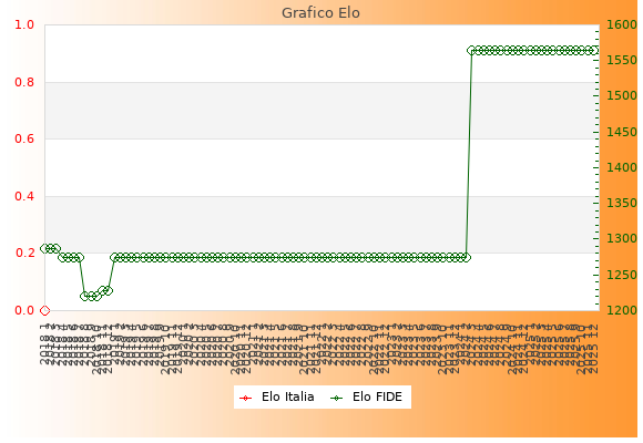 Elo FIDE: 1565    Migliore: 1565  (Dicembre 2025)    Peggiore: 1220  (Agosto 2018)