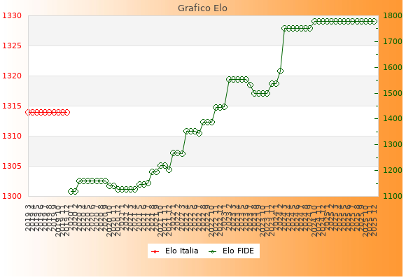 Elo FIDE: 1777    Migliore: 1777  (Dicembre 2025)    Peggiore: 1118  (Gennaio 2020)