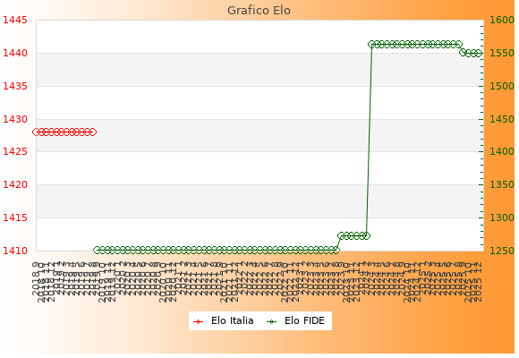 Elo FIDE: 1550    Migliore: 1564  (Agosto 2025)    Peggiore: 1252  (Settembre 2019)