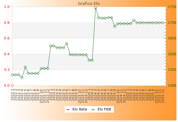 Elo Italia: 1416    Migliore: 1416  (Dicembre 2025)    Peggiore: 1416  (Luglio 2006)