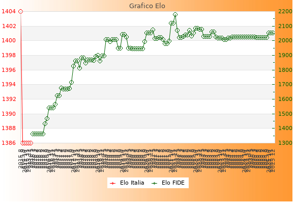 Elo Italia: 1509    Migliore: 1509  (Dicembre 2025)    Peggiore: 1329  (Luglio 2005)
