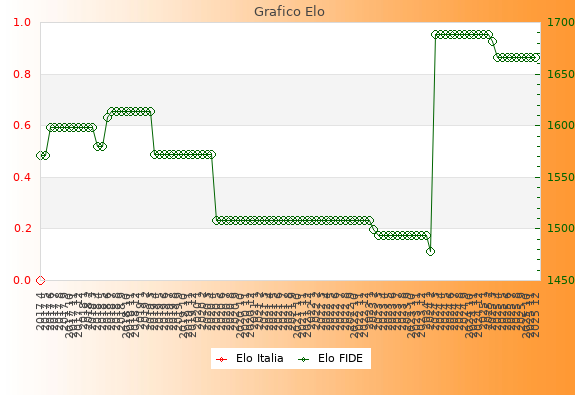 Elo FIDE: 1666    Migliore: 1688  (Febbraio 2025)    Peggiore: 1478  (Febbraio 2024)