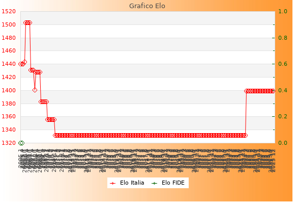 Elo Italia: 1399    Migliore: 1503  (Ottobre 2006)    Peggiore: 1332  (Gennaio 2011)