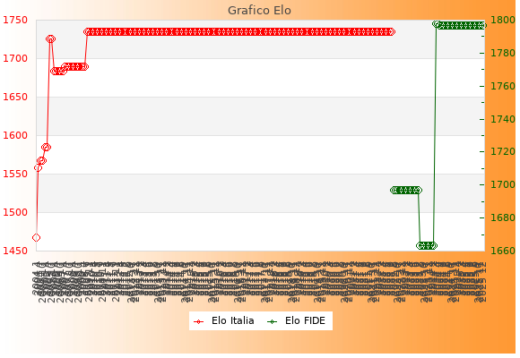 Elo FIDE: 1761    Migliore: 1761  (Dicembre 2025)    Peggiore: 1601  (Maggio 2011)