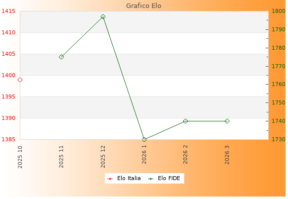 Elo FIDE: 1740    Migliore: 1797  (Dicembre 2025)    Peggiore: 1730  (Gennaio 2026)
