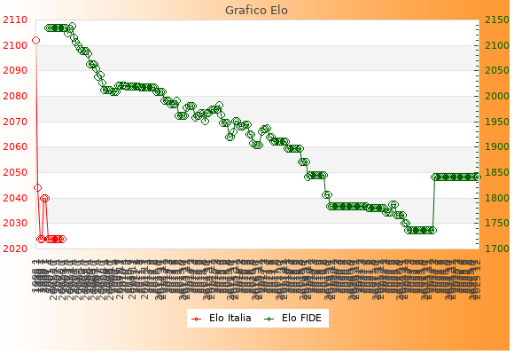 Elo Italia: 1399    Migliore: 1399  (Dicembre 2025)    Peggiore: 1395  (Aprile 2008)