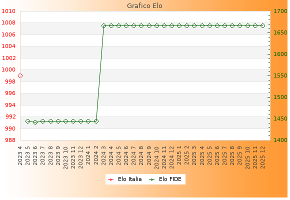 Elo FIDE: 1666    Migliore: 1666  (Dicembre 2025)    Peggiore: 1442  (Giugno 2023)