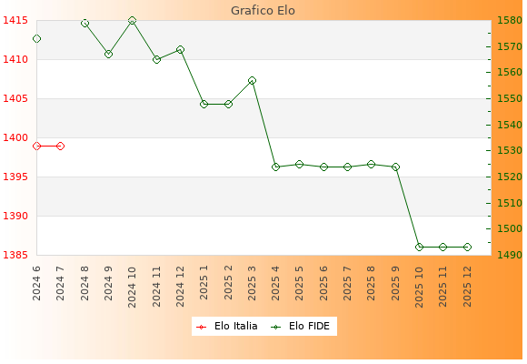Elo FIDE: 1561    Migliore: 1561  (Dicembre 2025)    Peggiore: 1269  (Agosto 2016)