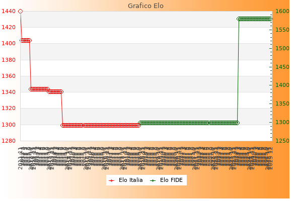 Elo FIDE: 1579    Migliore: 1579  (Dicembre 2025)    Peggiore: 1299  (Ottobre 2018)