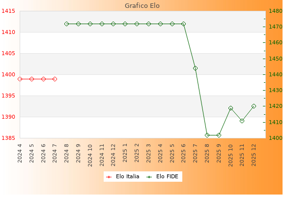 Elo FIDE: 1420    Migliore: 1472  (Giugno 2025)    Peggiore: 1402  (Agosto 2025)