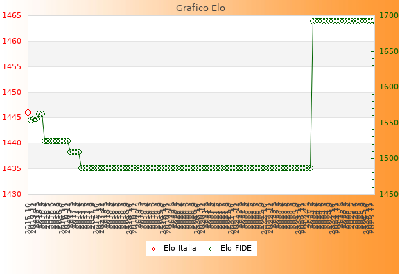 Elo Italia: 1580    Migliore: 1580  (Dicembre 2025)    Peggiore: 1500  (Gennaio 2000)