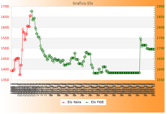 Elo FIDE: 1453    Migliore: 1453  (Dicembre 2025)    Peggiore: 1068  (Agosto 2019)