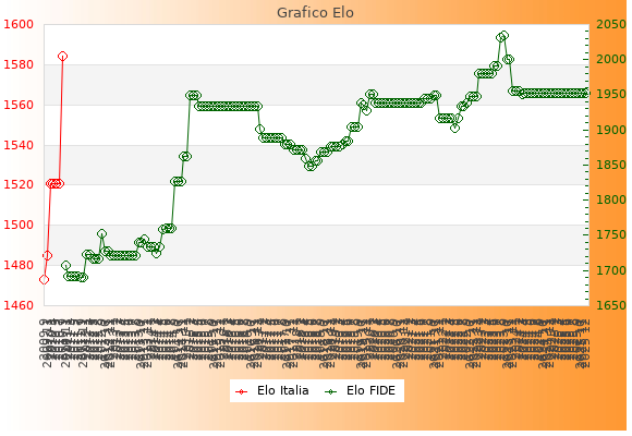 Elo FIDE: 1952    Migliore: 2035  (Settembre 2023)    Peggiore: 1691  (Settembre 2011)