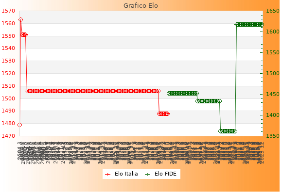 Elo FIDE: 1617    Migliore: 1617  (Dicembre 2025)    Peggiore: 1362  (Febbraio 2023)