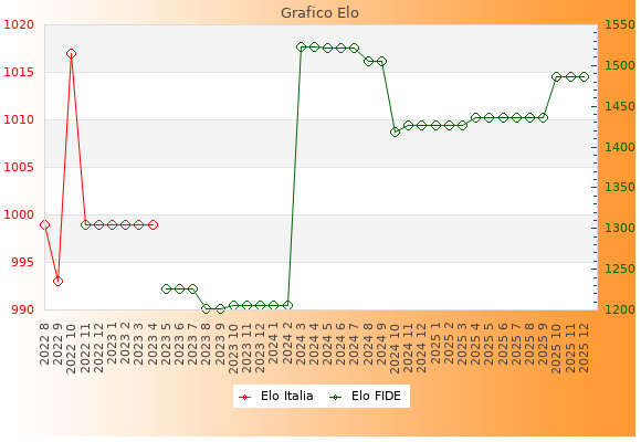 Elo FIDE: 1486    Migliore: 1523  (Aprile 2024)    Peggiore: 1202  (Agosto 2023)