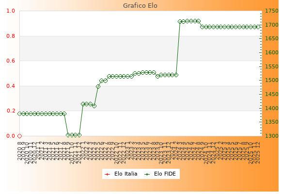 Elo FIDE: 1692    Migliore: 1713  (Agosto 2024)    Peggiore: 1304  (Settembre 2021)