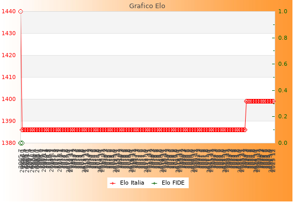 Elo Italia: 1399    Migliore: 1440  (Luglio 2005)    Peggiore: 1386  (Ottobre 2005)
