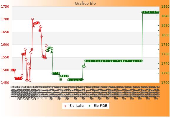 Elo FIDE: 1848    Migliore: 1848  (Marzo 2026)    Peggiore: 1706  (Dicembre 2014)