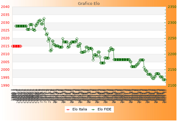 Elo Italia: 1399    Migliore: 1399  (Dicembre 2025)    Peggiore: 1398  (Aprile 2005)