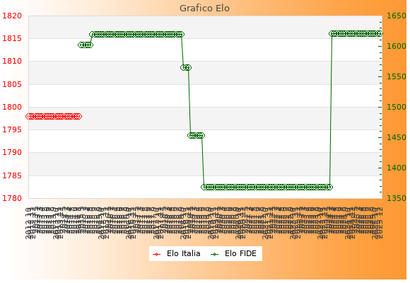 Elo FIDE: 1621    Migliore: 1621  (Dicembre 2025)    Peggiore: 1369  (Luglio 2019)