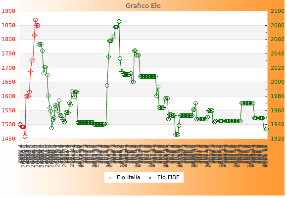 Elo FIDE: 1934    Migliore: 2085  (Luglio 2015)    Peggiore: 1926  (Luglio 2019)