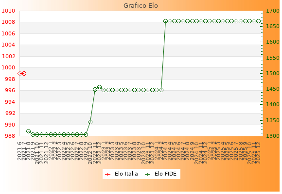 Elo FIDE: 1668    Migliore: 1668  (Dicembre 2025)    Peggiore: 1304  (Settembre 2021)
