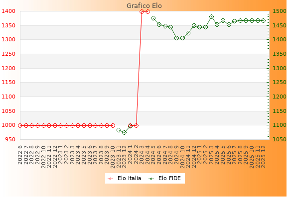 Elo FIDE: 1466    Migliore: 1480  (Marzo 2025)    Peggiore: 1075  (Dicembre 2023)