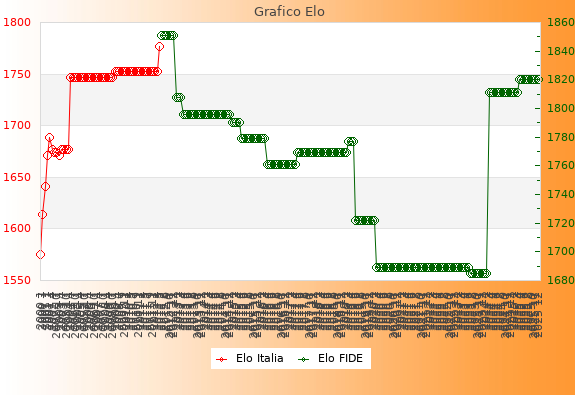 Elo FIDE: 1671    Migliore: 1671  (Dicembre 2025)    Peggiore: 1405  (Maggio 2018)