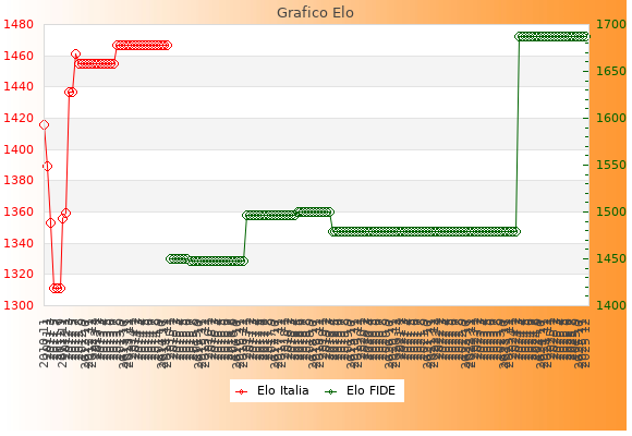 Elo FIDE: 1674    Migliore: 1674  (Dicembre 2025)    Peggiore: 1457  (Dicembre 2021)