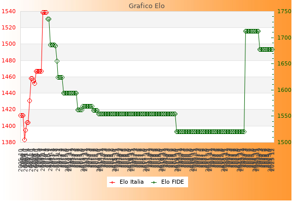 Elo FIDE: 1677    Migliore: 1735  (Settembre 2010)    Peggiore: 1520  (Ottobre 2019)