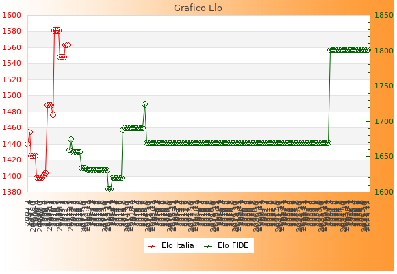 Elo FIDE: 1600    Migliore: 1812  (Gennaio 2011)    Peggiore: 1367  (Agosto 2022)