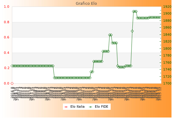 Elo FIDE: 1889    Migliore: 1906  (Giugno 2024)    Peggiore: 1716  (Aprile 2019)