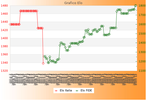 Elo FIDE: 1800    Migliore: 1800  (Dicembre 2025)    Peggiore: 1188  (Dicembre 2017)